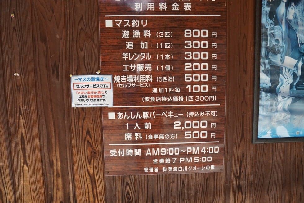 - Trout fishing fee 3 fish 800 yen Barbecue 2,000 yen per person
