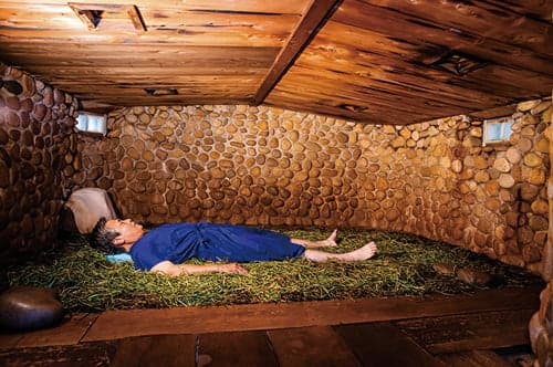 Medicinal herbs are placed in the stone chamber (14.6 m2) heated by the fumarolic fountain and customers lie down there for 10 to 15 minutes. You will sweat a lot like being a sauna, so it is recommended to drink enough water before bathing.