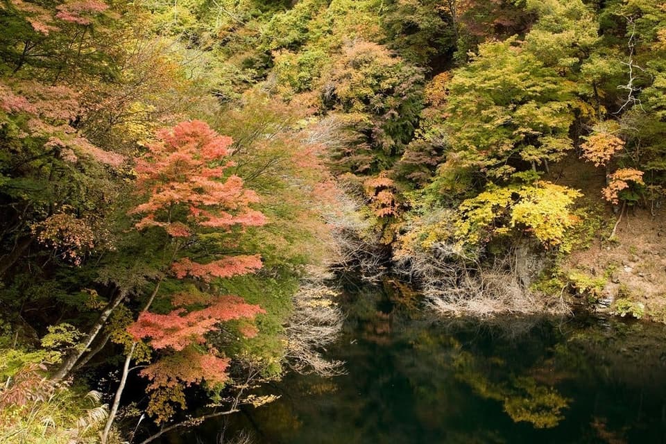 Autumn leaves of the Abukawa Valley and Hyugayama Dam