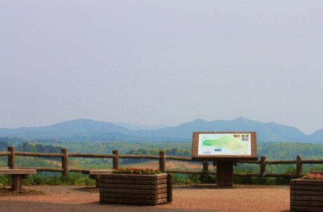 国道289号線沿いの新甲子温泉に向かう途中にあり、甲子高原の由井ヶ原方面が一望できる。