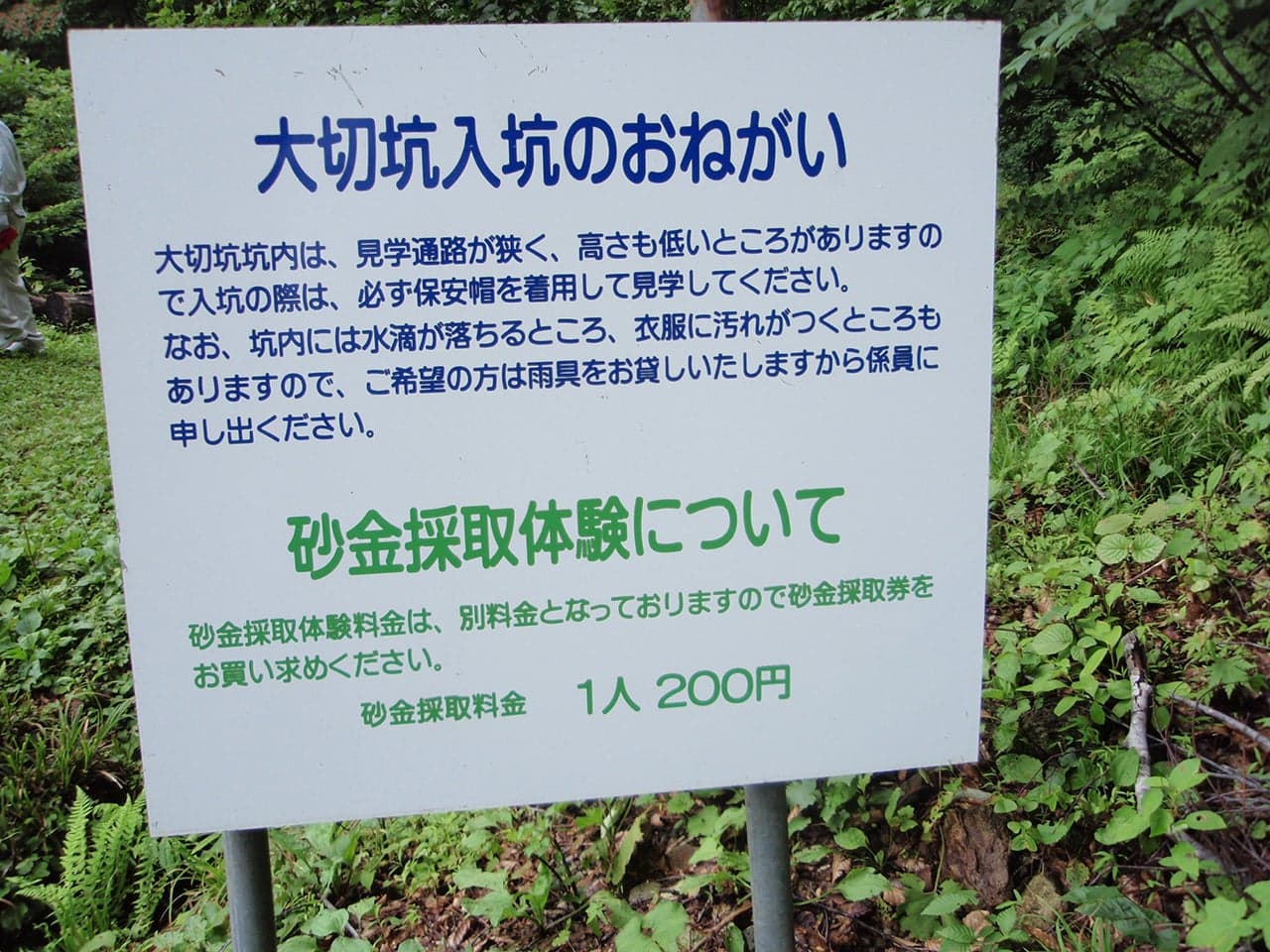- ●大人:600円 ●小人:300円 ●砂金採取体験:1人200円