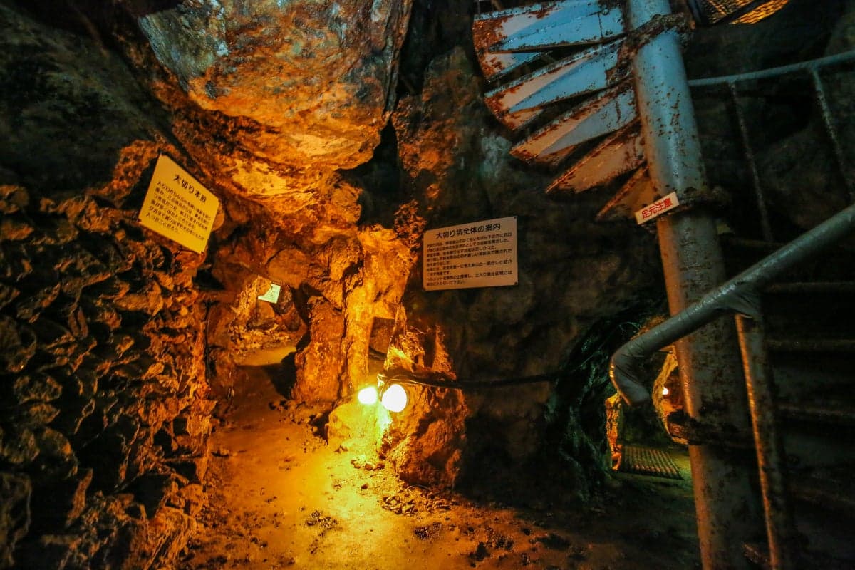 慶長年間には全国の産金量の3分の1を産出したと言われている鳴海金山跡は、当時のタヌキ掘り(手堀り)の跡と荒々しい岩肌が残されたままになっています。