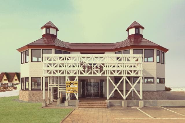 「羊と雲の丘」の頂上にあるレストラン。士別産羊肉(ラム)を使用した料理が楽しめます。1階の売店では、特産品やお土産などを販売しています。