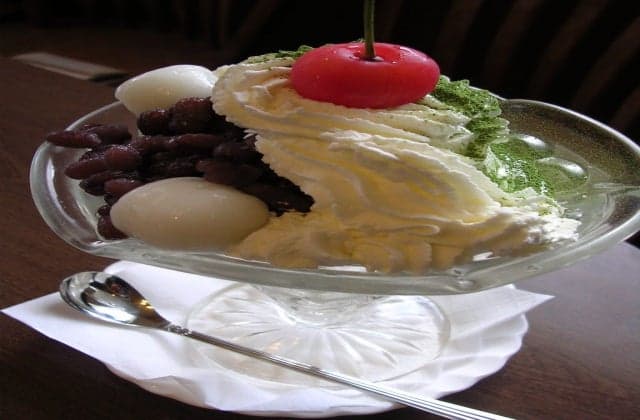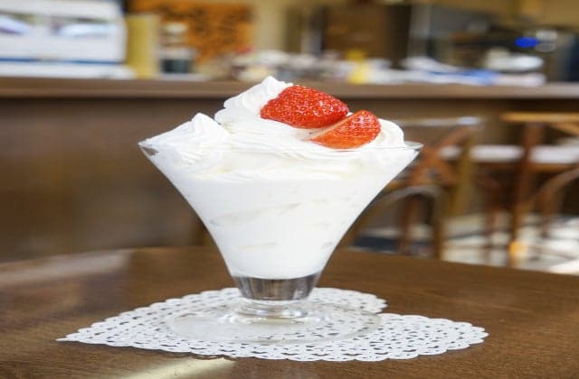 あずきの優しい風味と抹茶のほろ苦い味がおいしい「抹茶パフェ」や、レジェンドの「クリームパフェ」など、疲れが飛ぶ甘味が自慢?