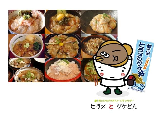 ほぼ一年を通して水揚げされる鰺ヶ沢産ヒラメは、白神山地の清流が流れ込む日本海が育んだ逸品。その極上ヒラメを贅沢にもヅケにし、たっぷりとご飯にのせた名物「鰺ヶ沢ヒラメのヅケ丼」。それぞれのお店が工夫を凝らしたオリジナルのヅケ丼を提供しています。(味付、価格、提供方法等は店舗により異なります。)