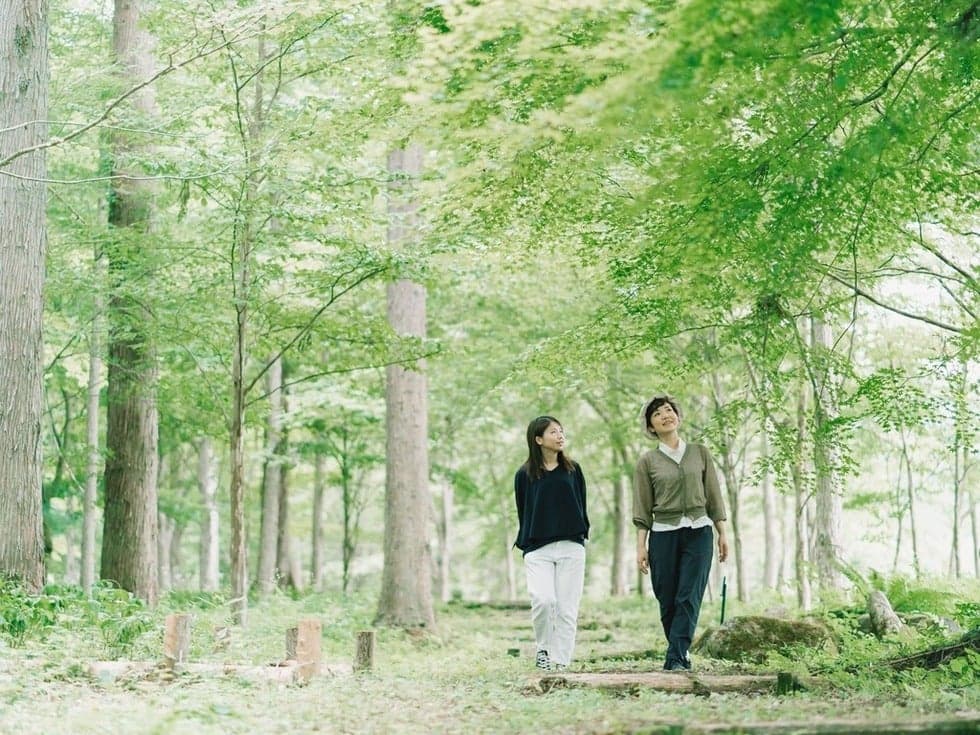 飛騨市古川町黒内エリアに広がる「朝霧の森」は、かつらの木が生い茂る美しい森。「朝霧たつ都」と称される飛騨古川を象徴するスポットです。霧が立ち込める早朝や木漏れ日が差し込む日中など、いつ訪れても自然の幻想的な美しさを見せてくれます。北と南に2つの遊歩道があり、どちらも30分ほどのハイキングコースになっています。南ルートの中腹には、飛騨に自生する薬草を集めた薬草壇が整備され、森林浴をしながら薬草について学ぶことができます。自然を楽しみながらの「飛騨クアオルト健康ウォーキング」も定期的に開催されています。