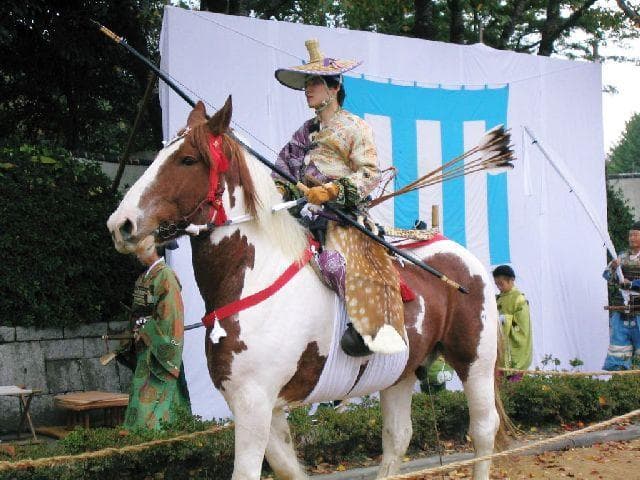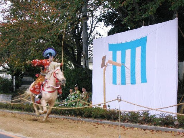 鶴岡八幡宮、日光東照宮と並ぶ、三大流鏑馬の一つに数えられる神事流鏑馬は、笠間の菊まつりの最盛期でもある11月3日を恒例日としています。