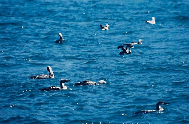 アビは冬に南下する渡鳥で,広島県の県鳥。豊浜町周辺海域で,毎年1月~4月にかけてみられ,特に斎島周辺には多く見られる。