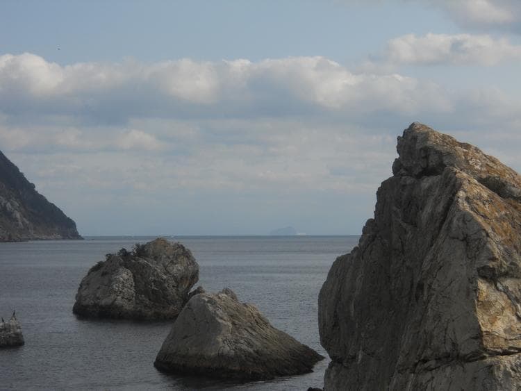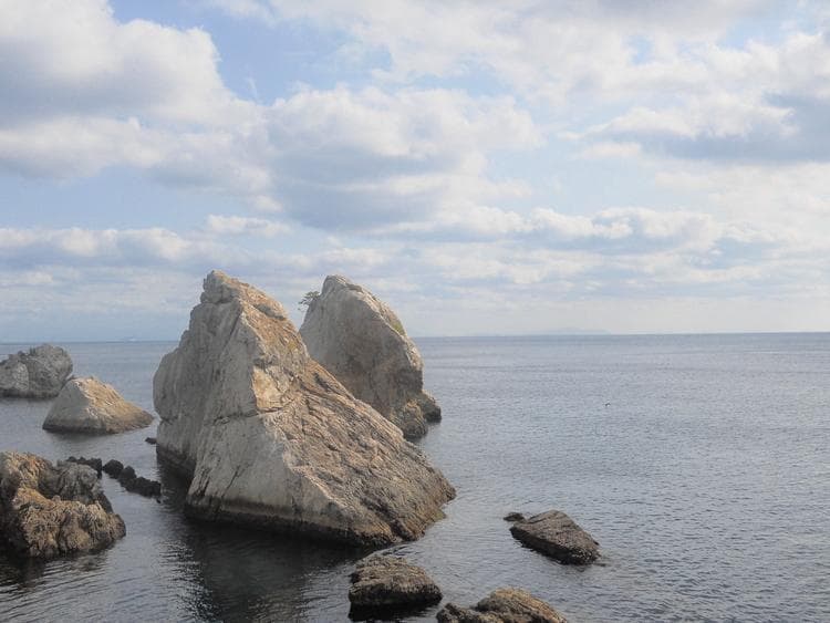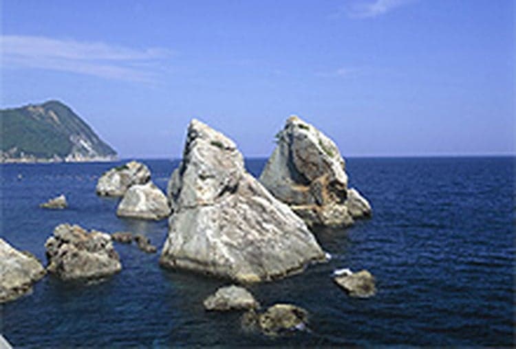 大岩が美しい海に3つ並んでそびえ立っており、大分百景の一つに数えられています。