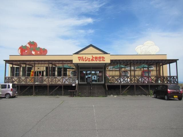 村特産品のトマトとほたての大きな看板が目印、新鮮な農産物を販売しています。陸奥湾を眺めながら食事や買い物を楽しんだり、ドライバーの疲れを癒すポイントとして利用できます。