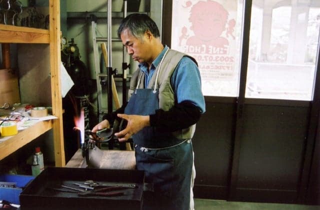 鍛冶屋の技をつかい、内子の和ろうそくにあう燭台を手作りている。事前予約により燭台づくり(有料)も体験可能。