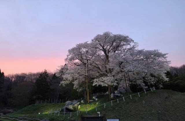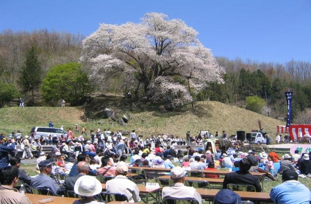 「越代のサクラ」は樹齢400年以上、樹高20m、幹囲7.2mあるヤマザクラの大木で、花の開花はやや遅く、4月下旬頃に見頃となります。県の天然記念物にも指定されており、屋久杉などと並び林野庁「森の巨人たち100選」にも選ばれているその圧倒的な迫力で、見る人々を魅了しています。桜の見頃に合わせて地元団体がステージショーを催し多くの観光客で賑わいます。