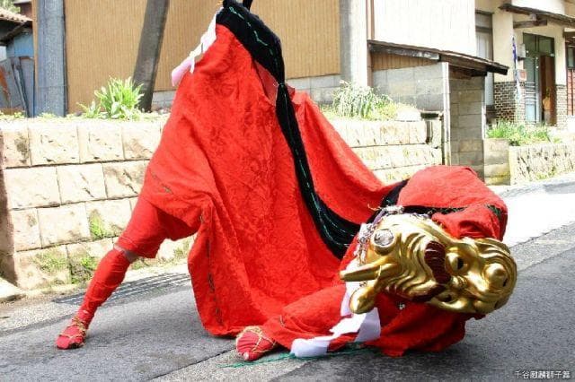 麒麟獅子と猩々が登場、火除けを祈願する使いとして地域全戸を訪問。町無形文化財に指定されています。
