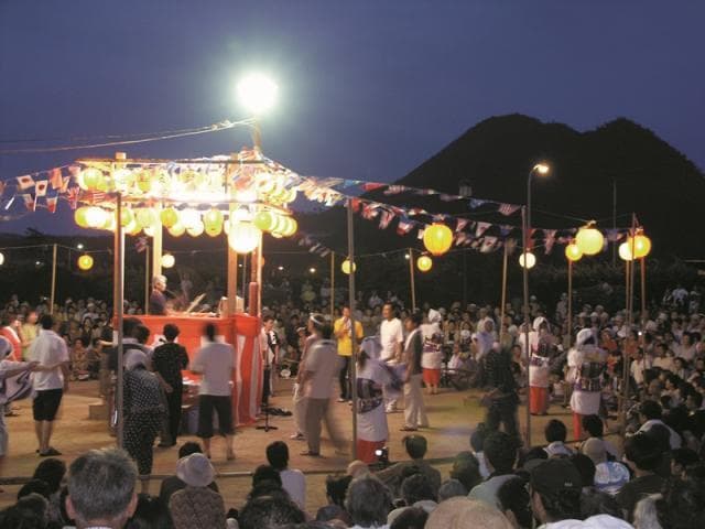 姫島の盆踊りは念仏踊りから派生したといわれています。「キツネ踊り」、「アヤ踊り」、「銭太鼓踊り」、「猿丸太夫踊り」の伝統的な踊りと新しく創り出される創作踊りがあります。