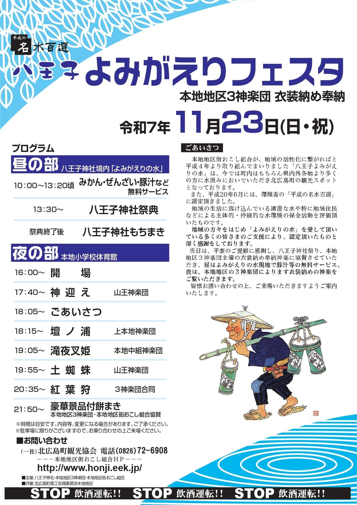 - ・昼の部 八王子神社 10:00~ ・夜の部 本地小学校 16:00開場