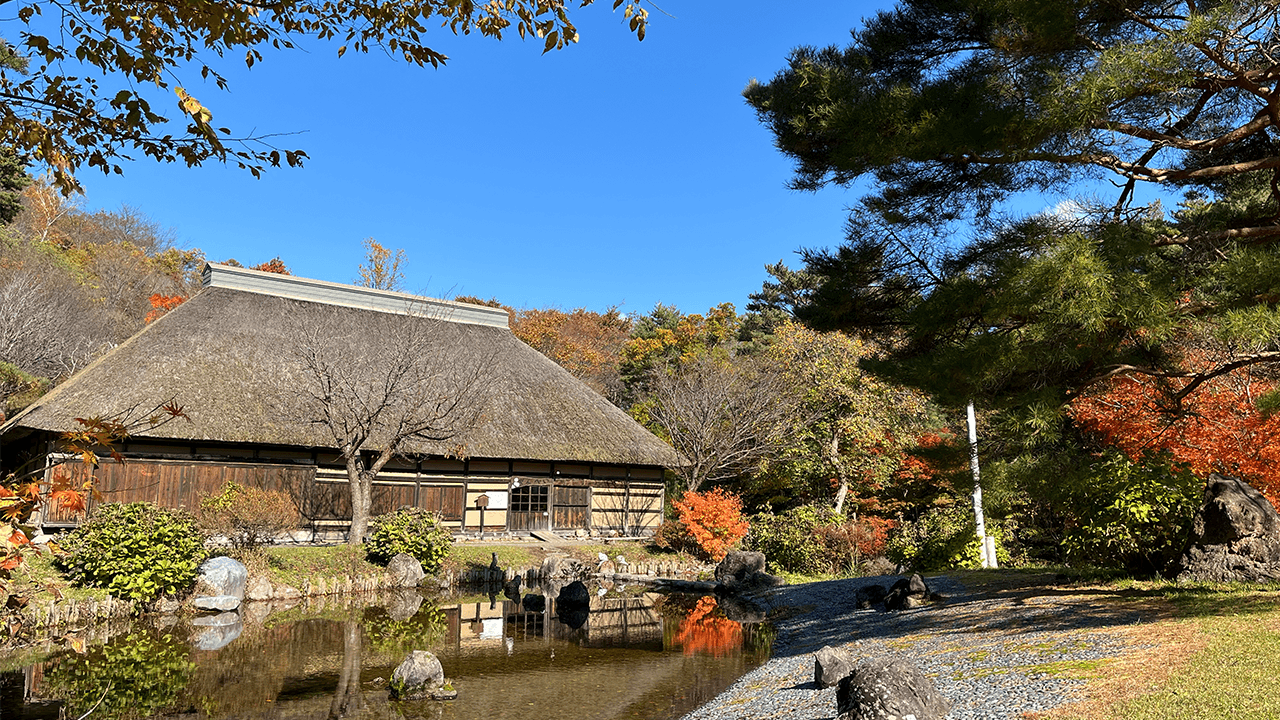 田子町の約100年前の農村風景を再現した体験型施設。町内にあった茅葺き屋根の伝統建築「南部曲がり屋」を移築し、昔懐かしい癒しの空間が広がります。