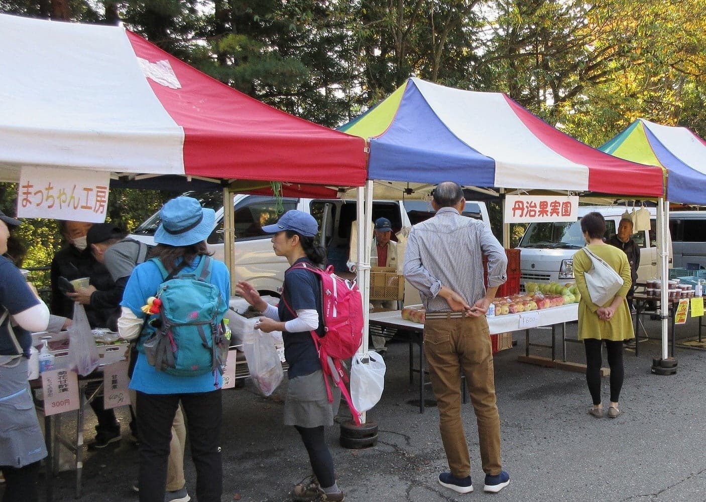 紅葉の名所として知られる霊山では、秋が深まる時期に「紅葉まつり」が開催されます。霊山登山口で地元の物産展が開かれます。