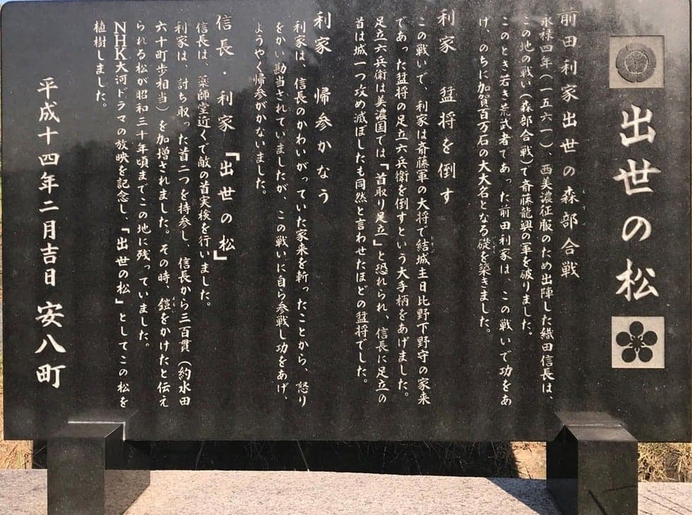 正規名称:森部の合戦場跡と出世の松(利家とまつ)