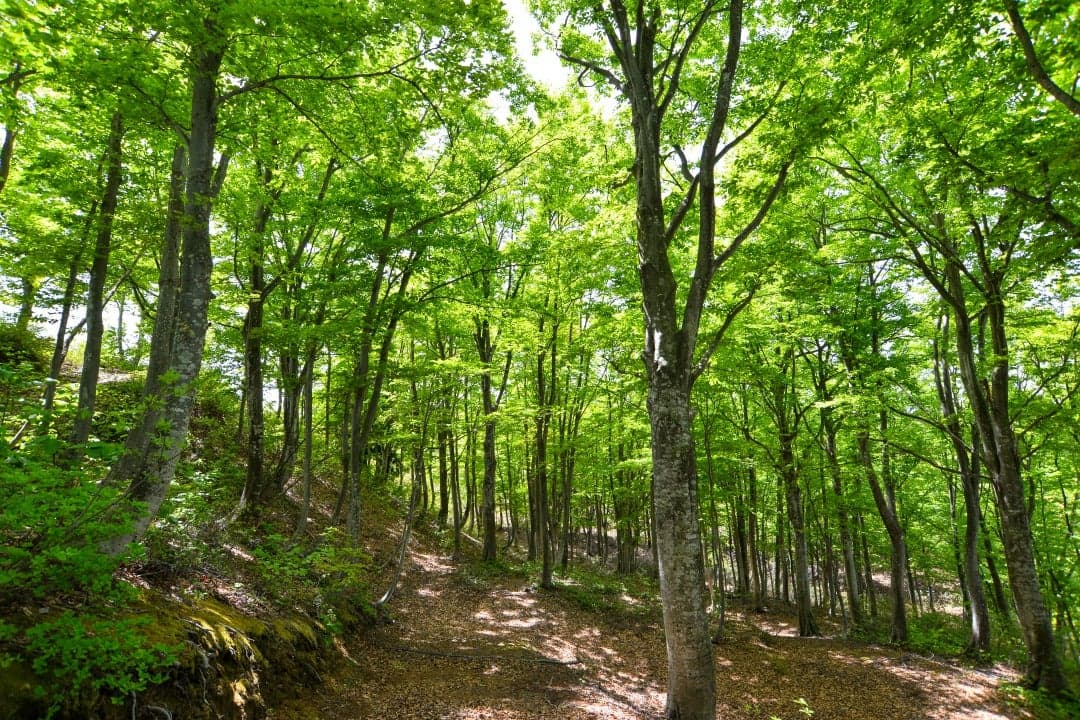 ブナの木が立ち並ぶ森林浴スポット