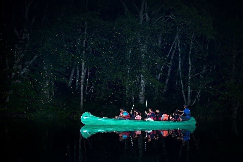 青木湖のホタルは主にヘイケボタルで、時期が7月中旬から8月下旬と長期間楽しめます。湖岸からはほとんどホタルが見られないため、各種クルーズにお申込みいただいて湖上でホタルをお楽しみください。