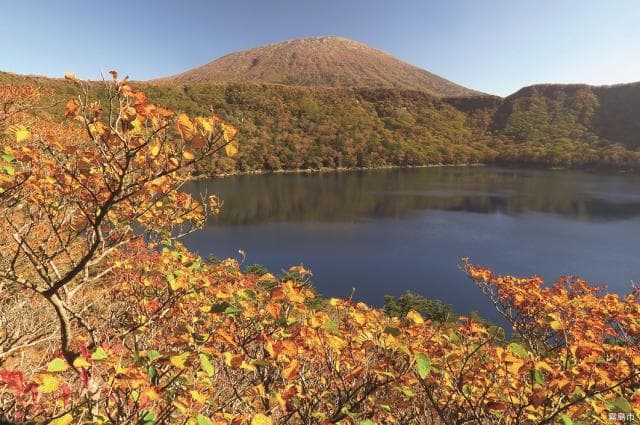 大浪池は、霧島山の噴火活動により山頂の加工に水が溜まってできた池。静けさを湛えたコバルトブルーの水面が神秘的。登山道は山頂近くまで歩きやすく整備されており、比較的気軽に登山を楽しめる。