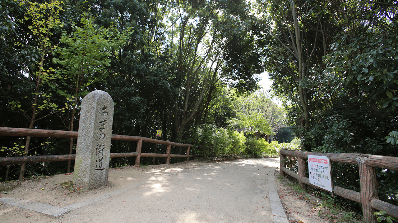 大阪狭山市の市立郷土資料館の横にある、細い坂道を上っていくと、「右 あまの山二里 左 かうや三里」と書かれた、西高野街道と天野街道の分岐点を示す道標がある。この街道は、昔、天野山の金剛寺に行くための参詣道として使われていた。現在では道が綺麗に整備され、昔ながらの街道としての雰囲気は、無くなってしまっているが、野鳥の観察や、見晴らしのいい景色など、自然を満喫しながら歩くことのできるハイキングルートとして親しまれている。
