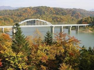 昭和32年、桂沢ダムの完成によってできた周囲62kmの大人造湖。新緑、紅葉、冬のワカサギ釣りなど四季を通して楽しめる。