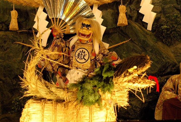 神楽や獅子舞などの無形文化財多く伝承されている豊後大野市。伝統芸能の中心地である神楽会館のホールでは定期的に公演が行われ、舞手の息遣いが伝わるような距離で神代の世界を堪能できます。