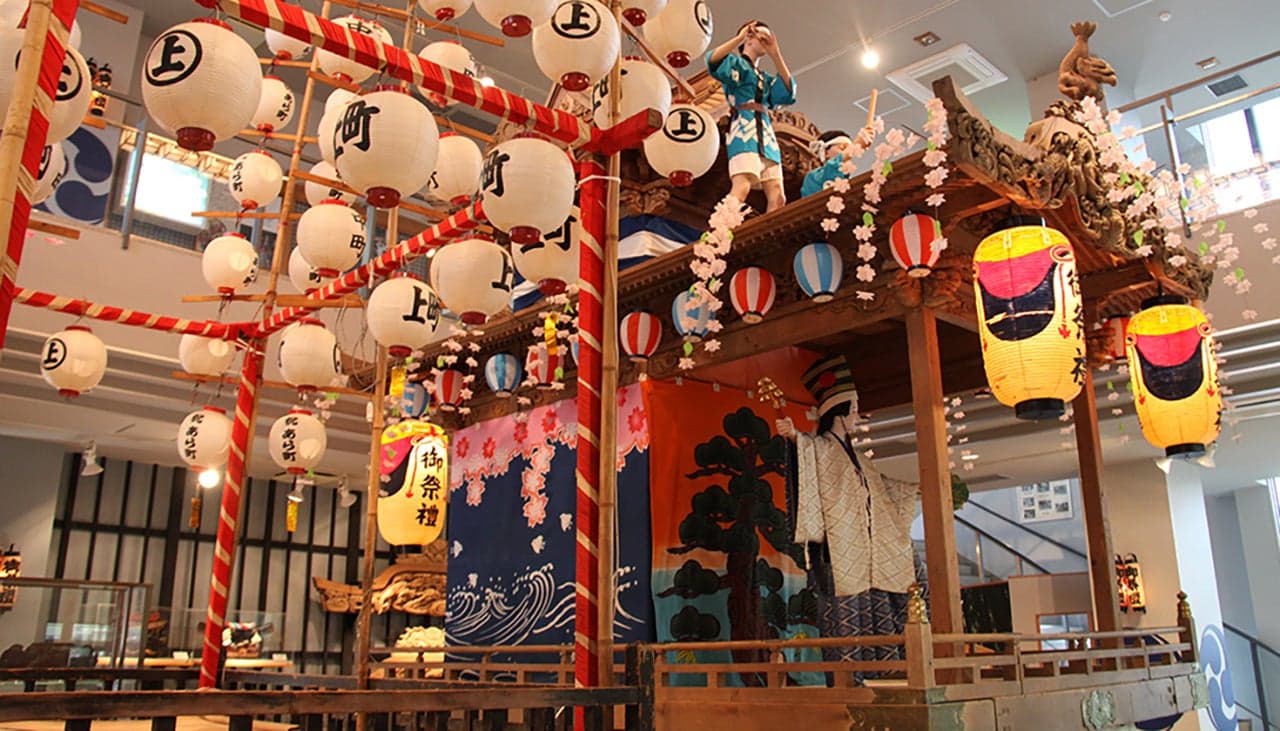 赤泊総合文化会館の中にある施設。祭りを再現した「踊屋台」という山車に迎えられます。「第1展示室」では鬼太鼓など佐渡全域の祭りを紹介。「第2展示室」では、赤泊地区の民俗資料を展示。村人の苦闘の歩みに触れられます。林不忘・牧逸馬・谷譲次と3つのペンネームで活躍した赤泊出身の作家「長谷川海太郎」コーナーもあります。
