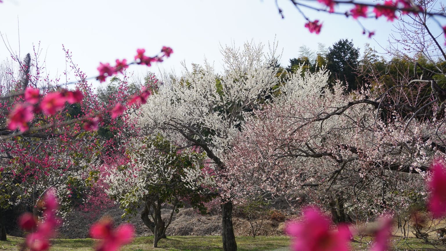 早春には公園内の紅梅、白梅が花を競いあい、その香りは春の訪れを感じさせます。