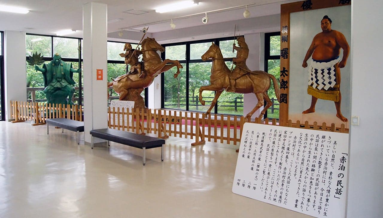 港に向かって突き出た小高い丘の上。赤泊城主・本間参河守高頼が築いたとされる戦国末期の城跡が公園として開放されています。「城の山公園展望台」は、「民話の里・赤泊」の展示館でもあり、民話の場面を表現した銅像を各階に設置しています。5階展望室からは、眼下の赤泊港、越後連山を望み、緑深い背後の山々まで、360度の大パノラマを楽しめます。
