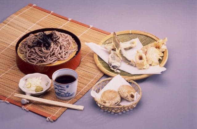 強清水の茶屋街は、昔は滝沢峠の茶屋としてにぎわい、今でも多くの人が訪れます。昔から保存のきく身欠きニシン、スルメを清水につけて軟らかくしてから天ぷらにしたものを、地元では醤油に七味を少々加えてピリカラ味で楽しみます。会津地方では来客や祭事にはつきものの家庭料理でもある「まんじゅうの天ぷら」は、天ぷらにするとあんの甘さが増し、それに地元産磐梯山麓の手打ち蕎麦を添えれば、もう会津の「ごっつぉう(ごちそう)」です。