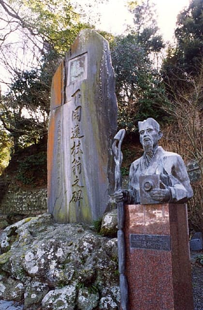 下田城山公園の中腹にありペリーやハリスの言葉や肖像が彫られている。5月の第3週の土曜日を含む金曜日~日曜日には黒船祭が行われ、開国記念碑前で記念式典が開催されます。