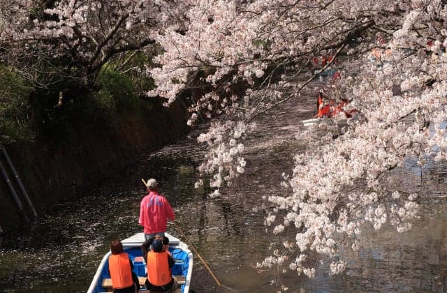 全長2kmに渡る並木道に桜の木がズラリと立ち並び、フォトスポットとしても人気の「生名ロマン街道」が会場。期間中には、アメゴ釣りや舟下りなど、大人から子供まで楽しめる催しが盛り沢山で、特に人気なのは、優雅に船に乗って桜を真下から眺められる「舟下り」です。船頭さんによる華麗な舵取りとトークを楽しみながら桜を堪能できます。2018年4月には台湾から2,500名の観光客を受け入れ、勝浦の桜、そして日本の桜・花見文化の架け橋になりました。