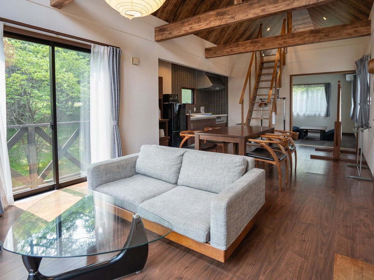 旅の目的に応じた選択を叶える宿泊棟は敷地内に2種類あり、まず1つ目は館内地下に内風呂や貸切湯を備えるコンドミニアムタイプの「星生倶楽部」。そして8棟の一戸建てコテージを有する「星生平」は野趣溢れる露天風呂が好評で、こちらの湯船のみ日帰りでも利用することができます。