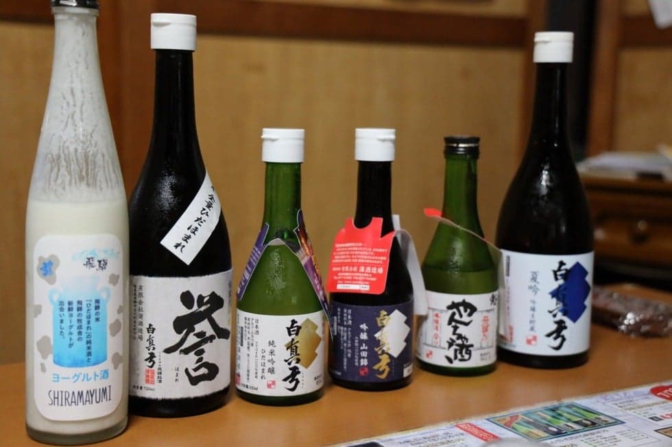「白真弓」、「やんちゃ酒」をはじめ、シャンパンのような喉越しの「じゃんぱん」など幅広い品揃えで、地元の人々に親しまれています。また、主屋をはじめとする建物は国の登録有形文化財に指定されており、中でも瀬戸川沿いの白壁土蔵街の一角として立つ文庫蔵は、まさに飛騨古川を象徴する景観の一翼を担っています。事前に予約をすれば、酒造りをしている蔵の中の見学や試飲も可能。歴史ある建物と、そこで生み出される飛騨の味を楽しむことができます。