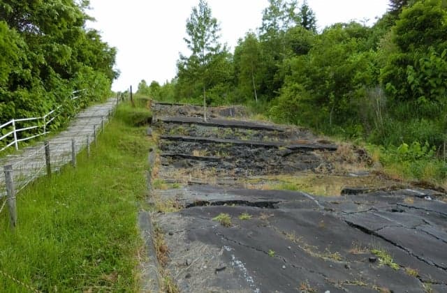 2000年の有珠山噴火で誕生した火口群。被害を受けた建物や隆起した道路をそのまま残している。全長約2kmの遊歩道を設置している。散策しながら当時の様子や自然の脅威を間近で見ることができる。
