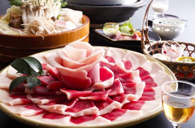 美山町の多くの飲食店、宿泊施設で山菜、鮎、松茸、ボタン鍋、地鶏料理などの季節の料理が楽しめる。