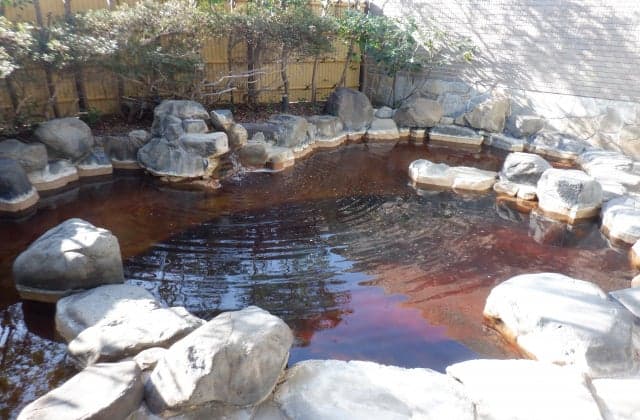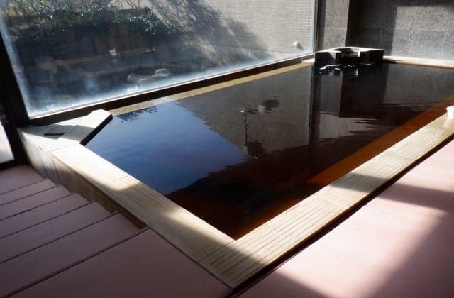 ナトリウム-塩化物・炭酸水素塩泉、琥珀色のお湯は肌の新陳代謝を促進させ、化粧水などにも配合されるメタけい酸(肌の代謝を高め、セラミドを整える作用がある)という成分が、通常の温泉に比べ3倍多く含まれています。