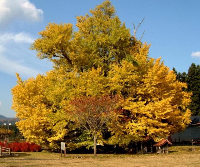 この銀杏の木のそびえる五庵川原は、臨済宗の名僧法身国師ゆかりの地である。銀杏の木は法身国師の手植えと伝えられ昭和31年5月14日、青森県天然記念物に指定された。また、近くには法身国師の碑がある。 銀杏の木は樹齢750余年、樹高26m・幹回り12m、11月中旬に黄金色に黄葉する。別名・子守イチョウとも呼ばれている。