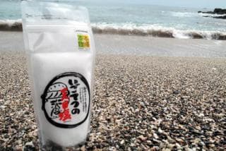 黒潮町のきれいな海水を、山の中腹まで運び釜炊きせず毎日手もみしながら、太陽と風力の自然エネルギーだけでゆっくりと結晶させた天日塩。