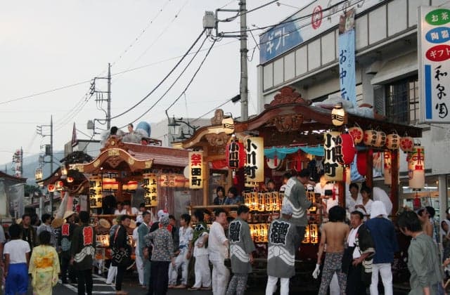 中之条町祇園祭は、江戸時代初期から続いている、夏の疫病払いや商業の繁盛を祈るお祭りです。各町内より引き出された山車の行列は、神馬、御神輿が先導し、子供たちが後に続き、華やかなお囃子にのって街中を練り廻ります。商店街には賑やかな音と大勢の来場者の活気で満ち溢れます。昼間は暑い陽照りの下で、夜は爽やかな風の中で、それぞれ違った雰囲気があり風情を感じることができます。