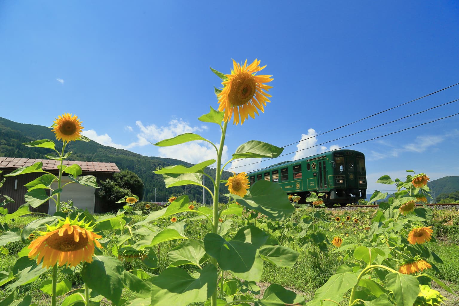 国内屈指の工業デザイナー水戸岡鋭治氏がデザインした観光列車3輌と、スズキの大柄バイク「ハヤブサ」がラッピングされた車輌が運行しています。