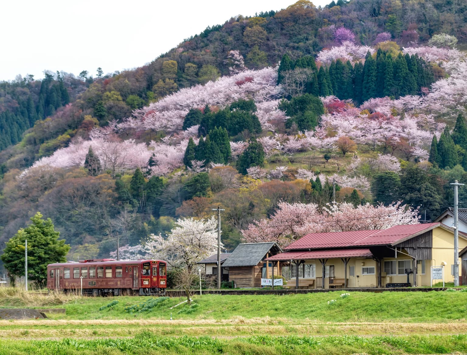 郡家駅から若桜駅までの区間を走るローカル路線「若桜鉄道」は、平成20年に全国で初めて沿線全体の23施設(駅舎・橋梁・転車台等)が国の有形登録文化財に登録されました。路線距離19.2kmで、始発駅から終着駅まで約30分。四季折々の美しい景観に恵まれた日本の原風景を眺めながら八頭町をめぐることができます。