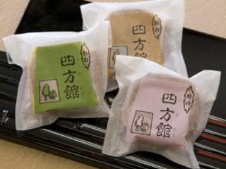 筑西市優良産品推奨品。 『四方館』(しもだて)は、厳選した材料の生地と上質な餡で包み焼き上げた当店代表の和菓子です。胡麻の風味の、こし餡、つぶ餡、麦の香りの白餡と三つの味をご賞味ください。