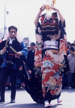 軽快な囃子に合わせ、雌獅子がその年の安泰を祈願し大神楽の舞を演じます。後取の所作も見物です。