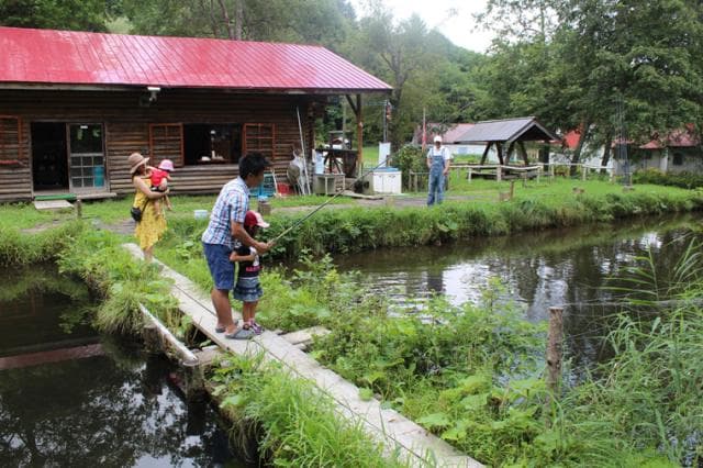 ヤマベ料理、ニジマス料理、山菜釜めし、つり堀などを楽しめます。