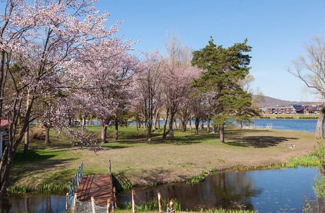 サクラやツツジ、シラカバなど、105種11,000本の樹木に包まれており、春はサクラ、夏はヨット・カヌー、釣りの名所として知られています?