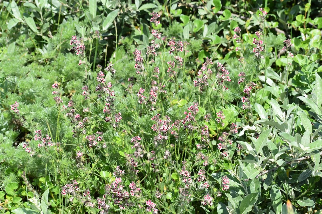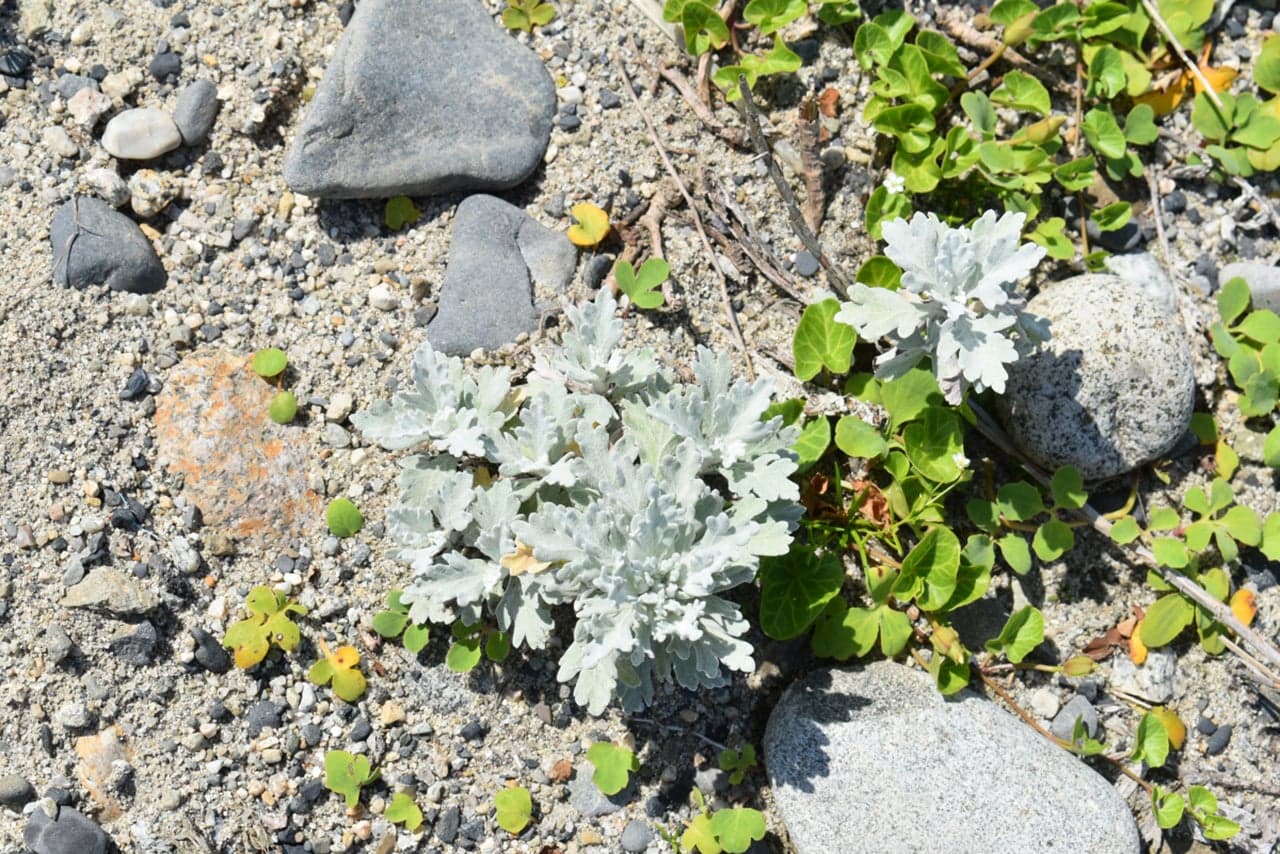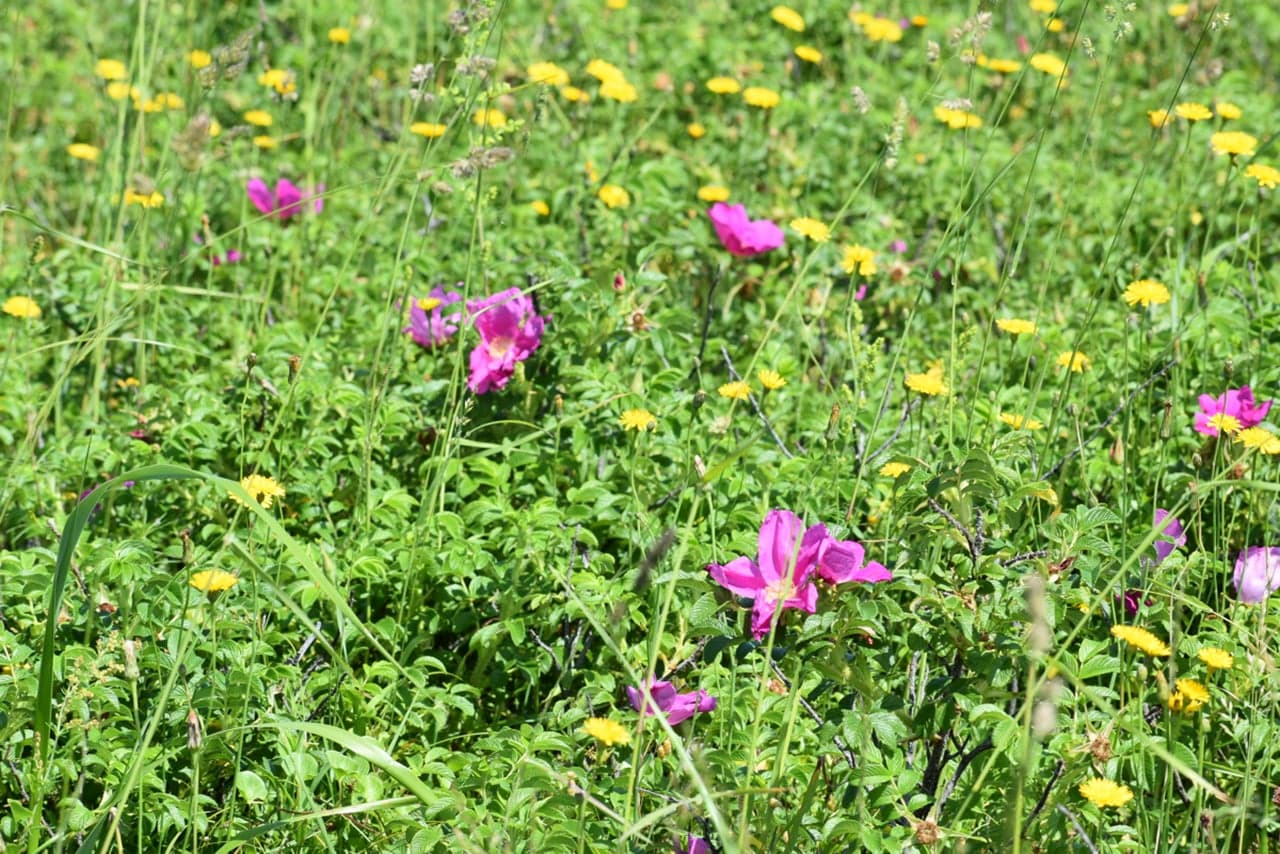 ハマナス、ハマゴウ、アキグミ、ケカモノハシ、カワラヨモギ、ハマニガナ、セナミスミレなど