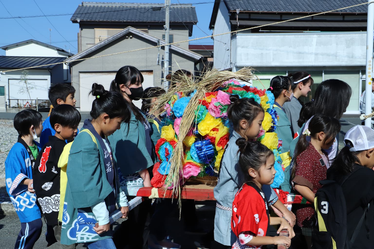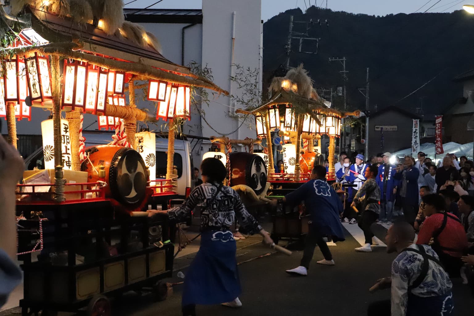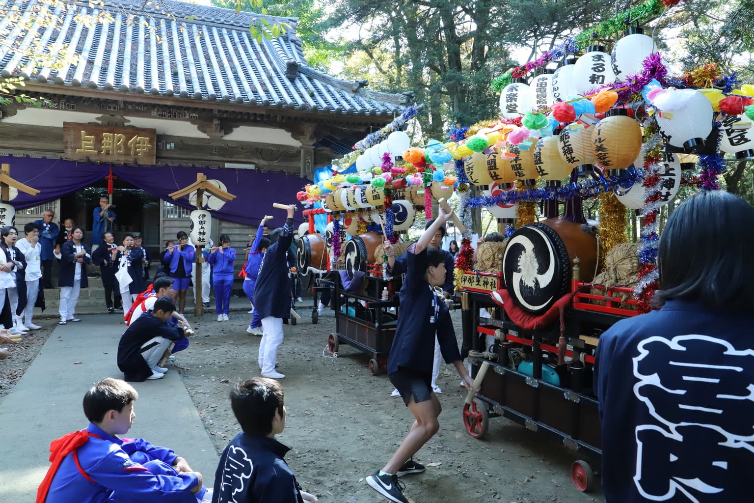 毎年恒例の秋祭りです。町内各所で各社 の若衆による、山車や太鼓台が練り歩きます。そして、笛や太鼓の音色が町内に響き渡ります。また、伊那下神社、船寄神社、道部神社では三番叟と呼ばれる幻想的な舞いが奉納され、見る人の心を惹きつけます。